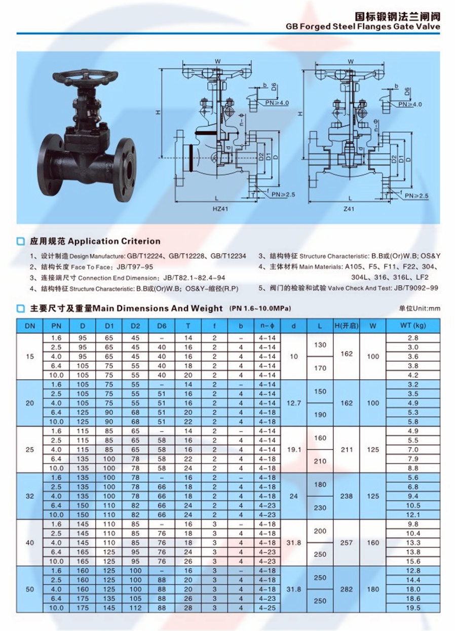 检索关键词:Z41H国标锻钢法兰闸阀 闸门 Z41H