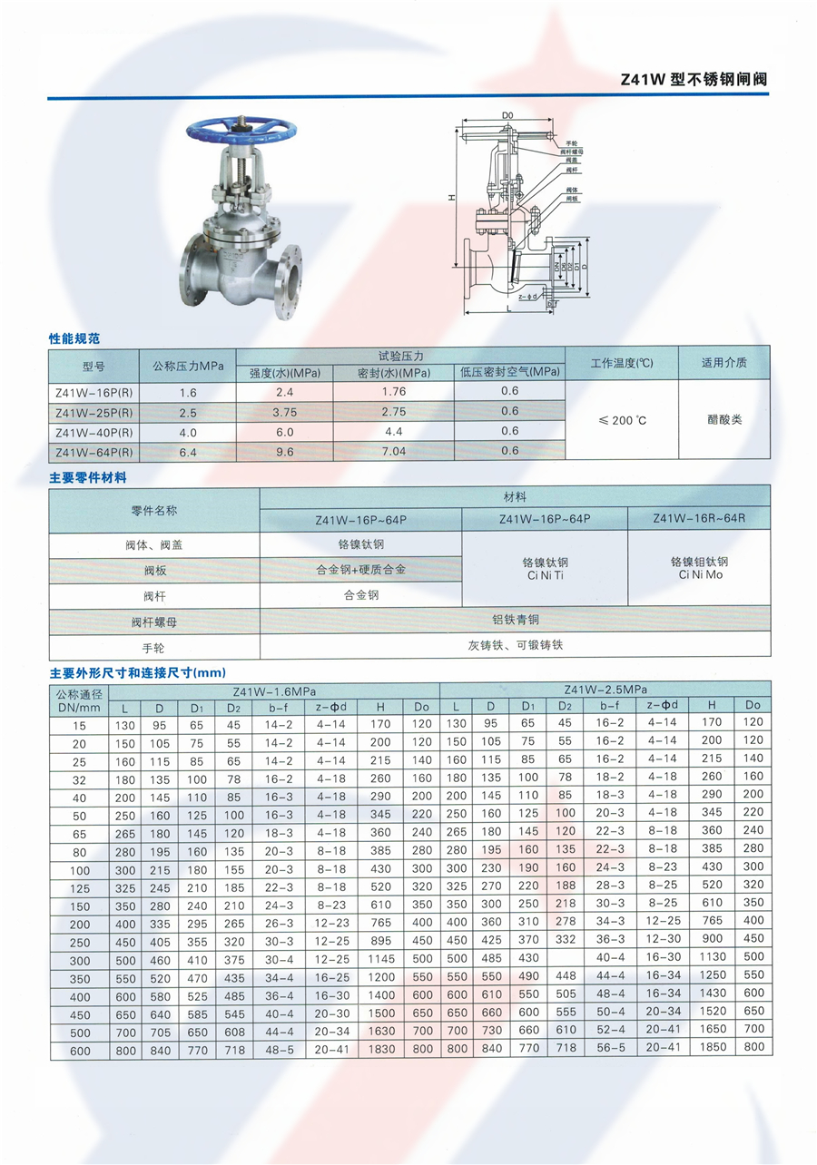 检索关键词:Z41W不锈钢闸阀 闸门 Z41W