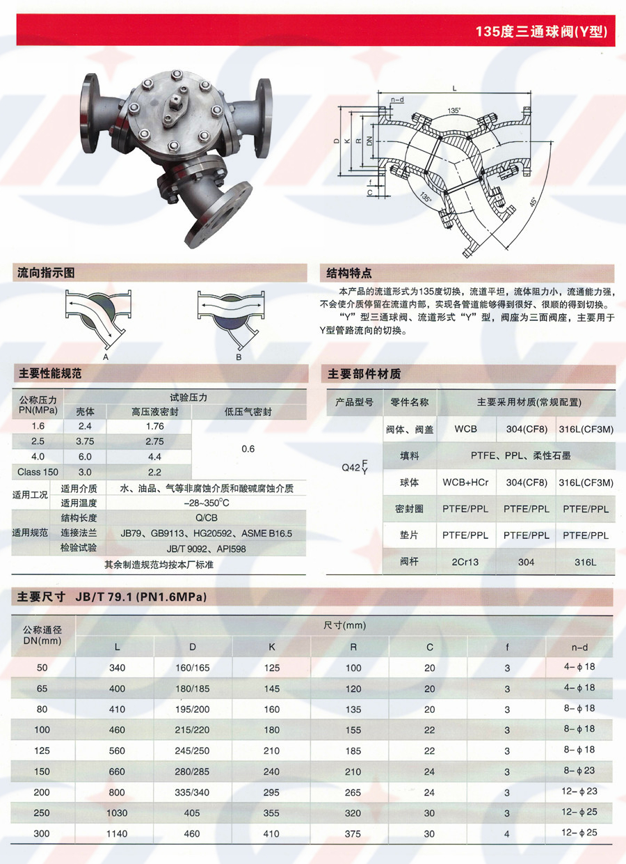 检索关键词:Q42F135度Y型三通球阀 球阀 Q42F135度Y型