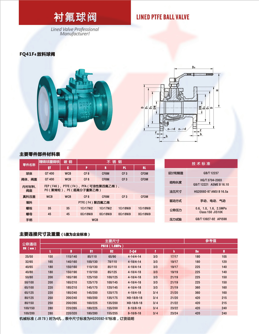 名称:FQ41F4衬氟放料球阀