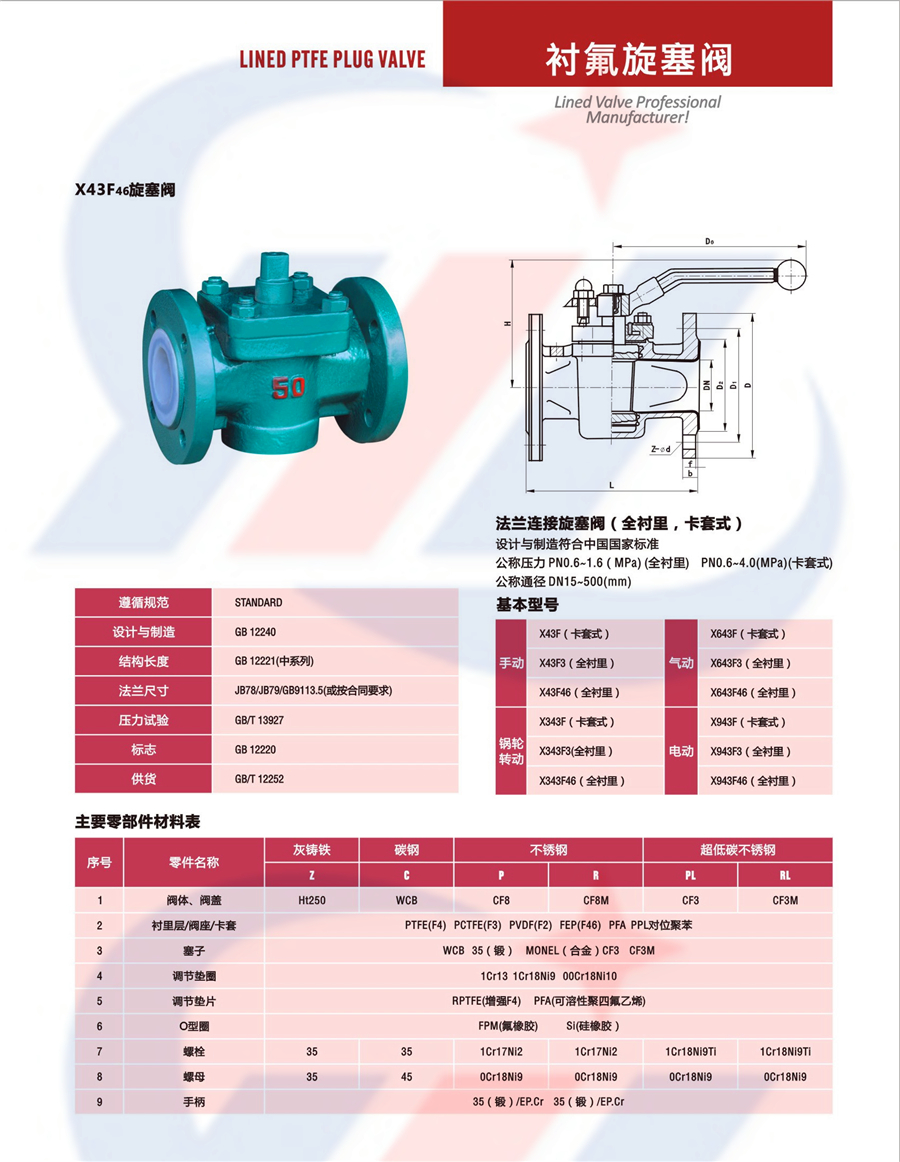 X43F46衬氟旋塞阀