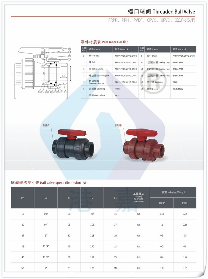 Q11F-6S FRPP螺口球阀2
